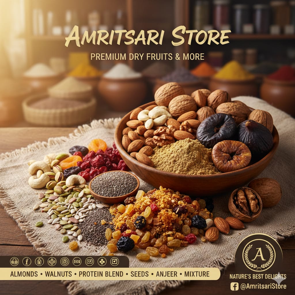 Handpicked almonds, walnuts, seeds, anjeer & nutritious blends — bringing you nature’s finest delights, fresh and pure.